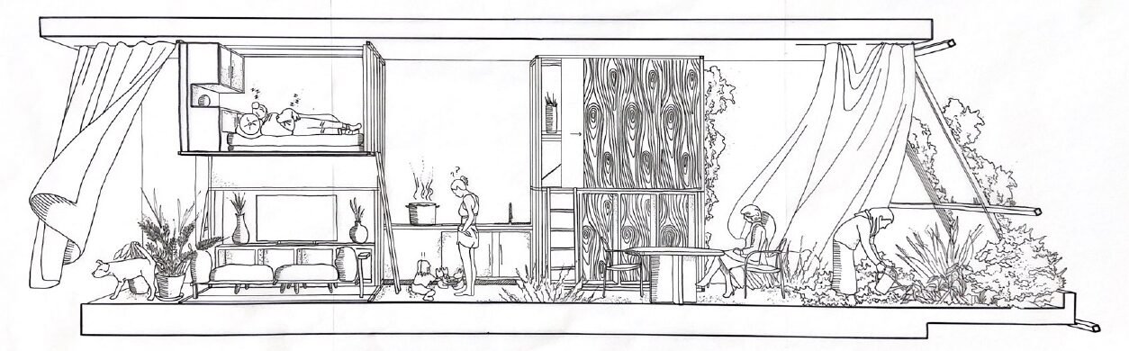 During post-World War II reconstruction, the resource-strapped Japanese government established three key pillars. One of these was the Housing Loan Corporation Act of 1950, which created a public finance entity offering loans with a low-interest rate of 5.5% for the construction of private homes, limiting the house area to a maximum of 100 m². Since the loan application required an architect’s confirmation, many architects became involved in the design process. Design competitions were held in architectural magazines and other publications, with notable works such as Yo Ikebe’s «Residence No. 3» (1950) and Makoto Masuzawa’s «Minimal Residence» (his own home) (1952).