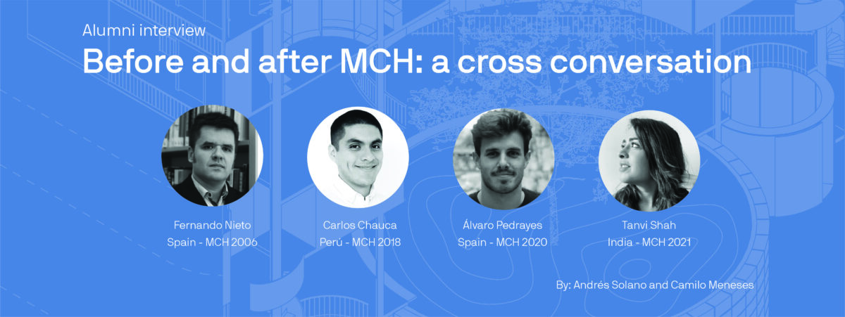 After a conversation via video call with the 4 participants, they agree on the change that the MCH has meant in their personal and professional development, highlighting not only the first class professors and the practical approach to architecture, but also the quality and diversity of the students in the program, in this sense the MCH is able to bring together diverse international points of view in a single great experience, something that is expected to remain the bastion of their teaching.